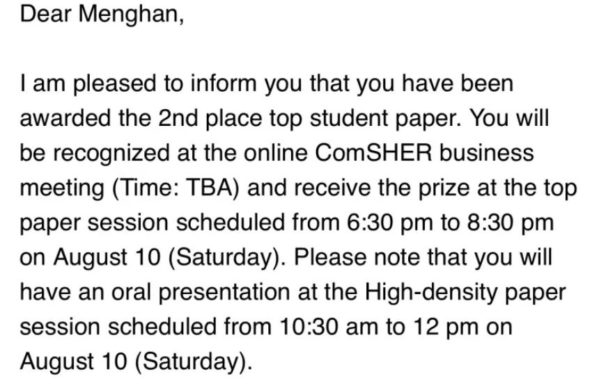 第107届新闻与大众传播教育学会(Association for Education in Journalism and Mass Communication, AEJMC)年会在美国费城举行,该会议对论文的质量要求严格,论文收录率低,入选论文集代表了新闻传播领域最新发展方向和最高研究水平。尹梦涵提交的论文“Active and Passive Social Media Use and Self-Stigmatization Among Chinese Patients with Gynecological Disorders: The Mediating Role of Social Support”(主动与被动的社交媒体使用对妇科疾病患者感知自我污名的影响——社会支持的中介作用)荣获“科学、健康、环境和风险传播”分会(ComSHER Division)的最佳学生论文奖(Top Student Paper Award)。该研究关注中国妇科疾病患者如何通过主动与被动的媒介使用行为感知到情感、信息、评价这三重社会支持,继而缓解疾病引起的负面心理状况,研究发现拓展了社交媒体上弱关系网络在健康传播中的作用。