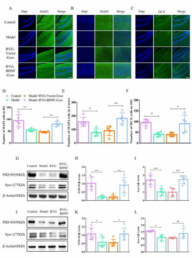 图6  RVG-BDNF-Exos能增强神经发生和调节突触可塑性