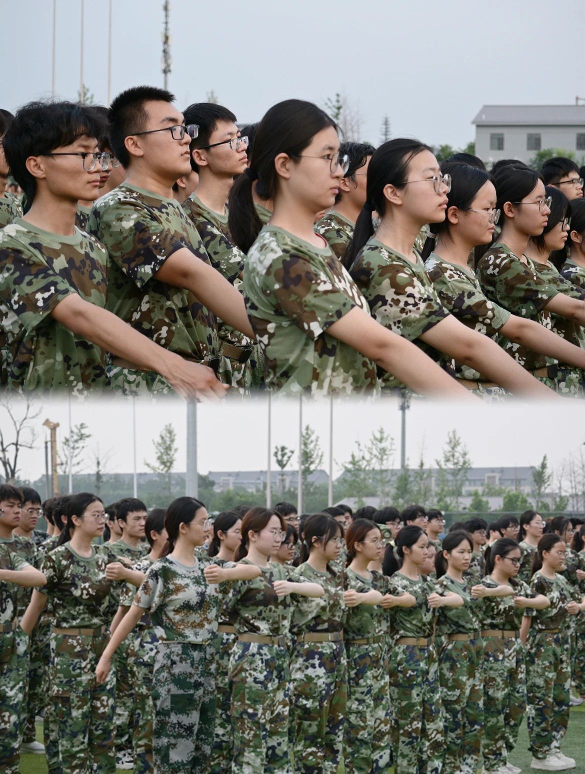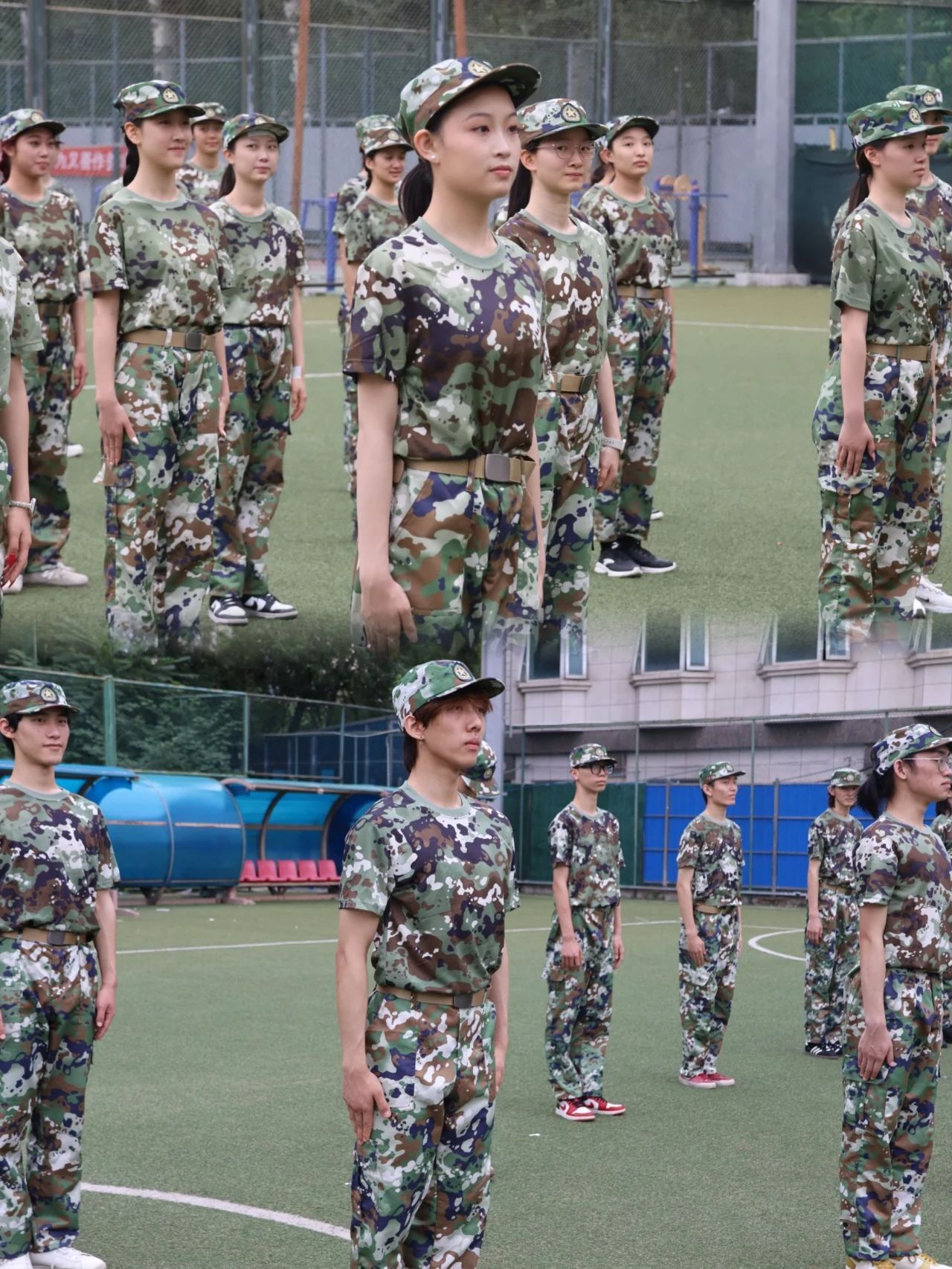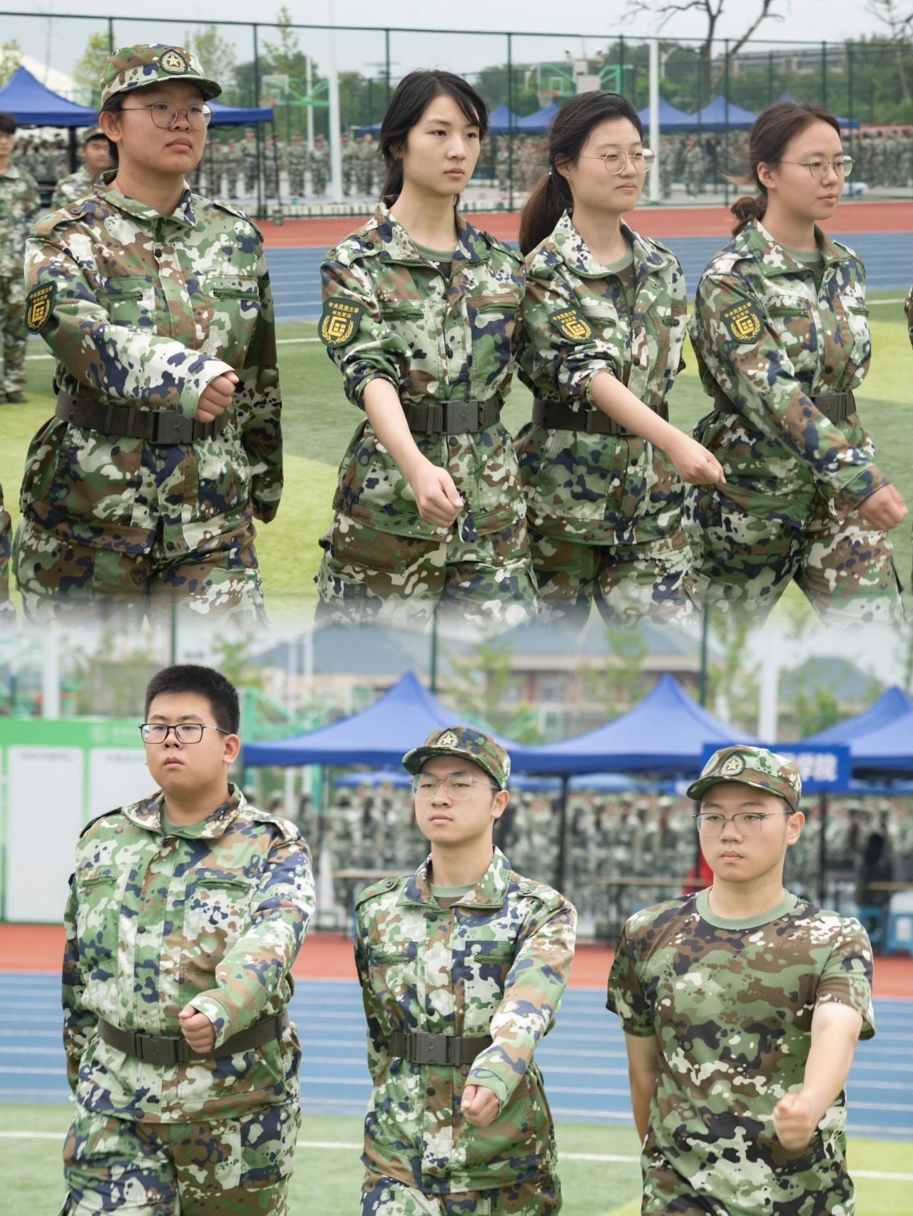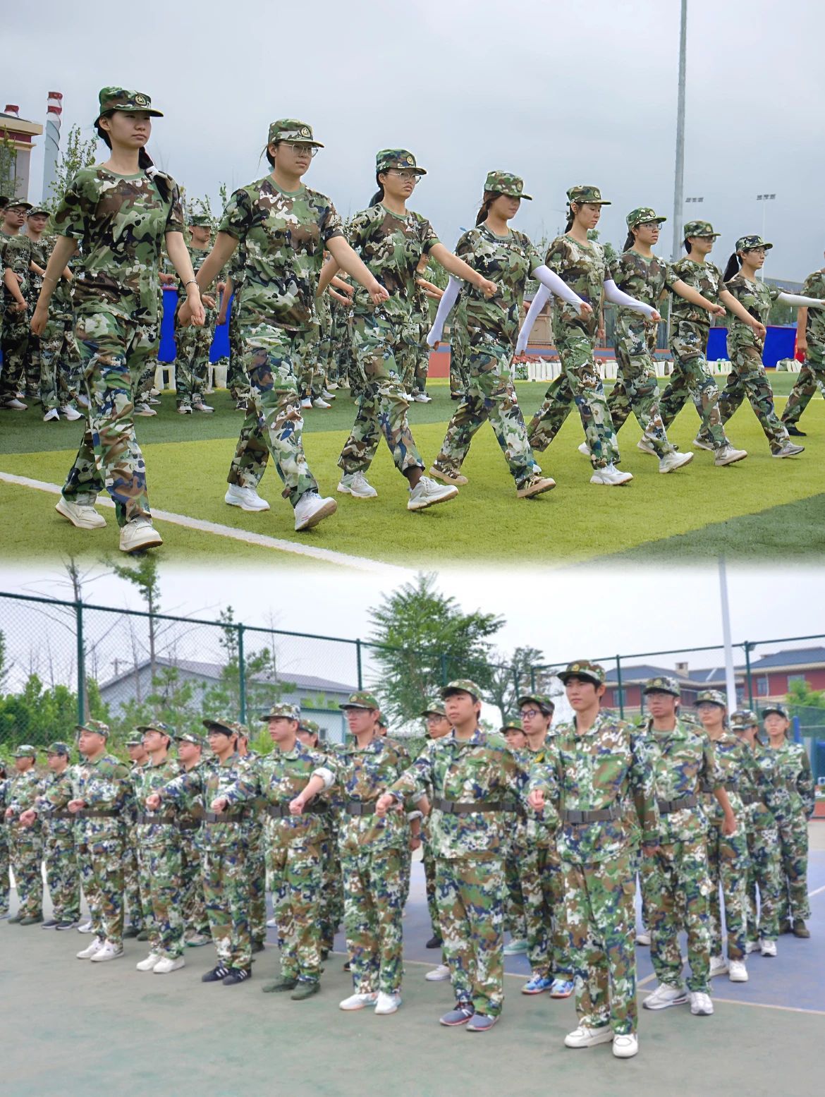 操场上整齐的“迷彩绿”们英姿勃发