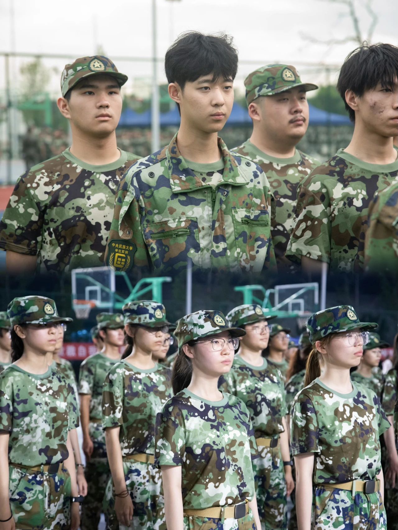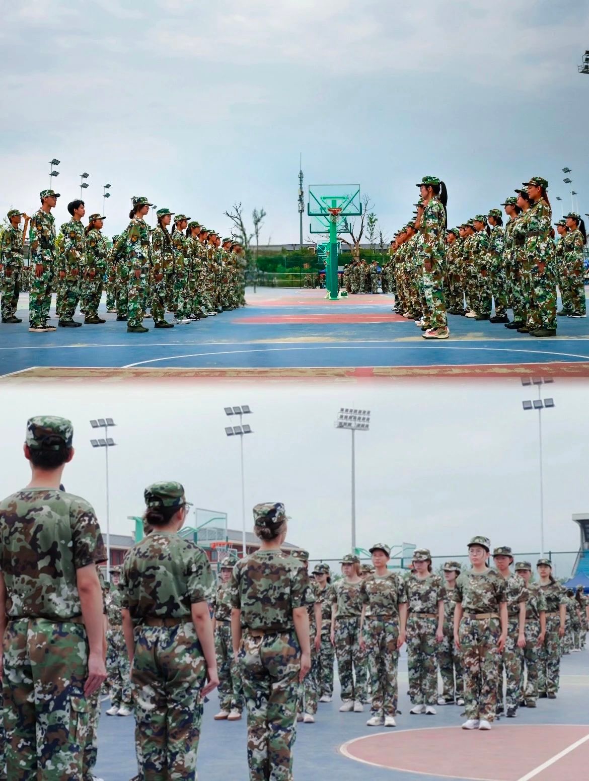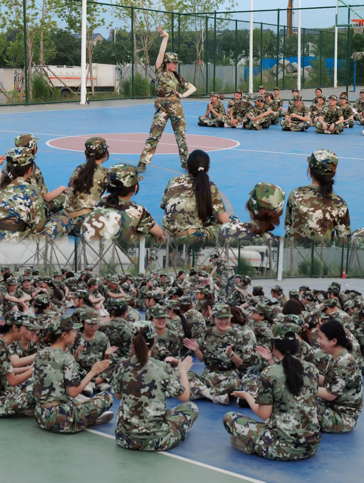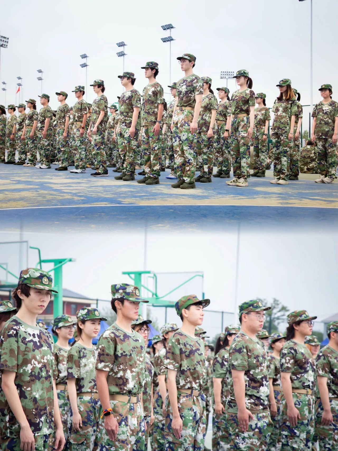 操场上整齐的“迷彩绿”们英姿勃发