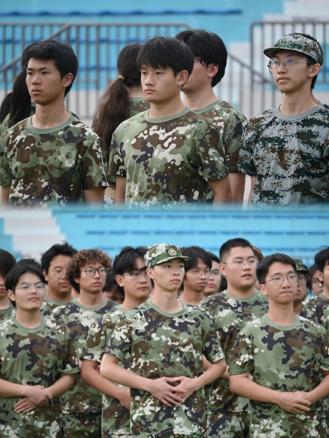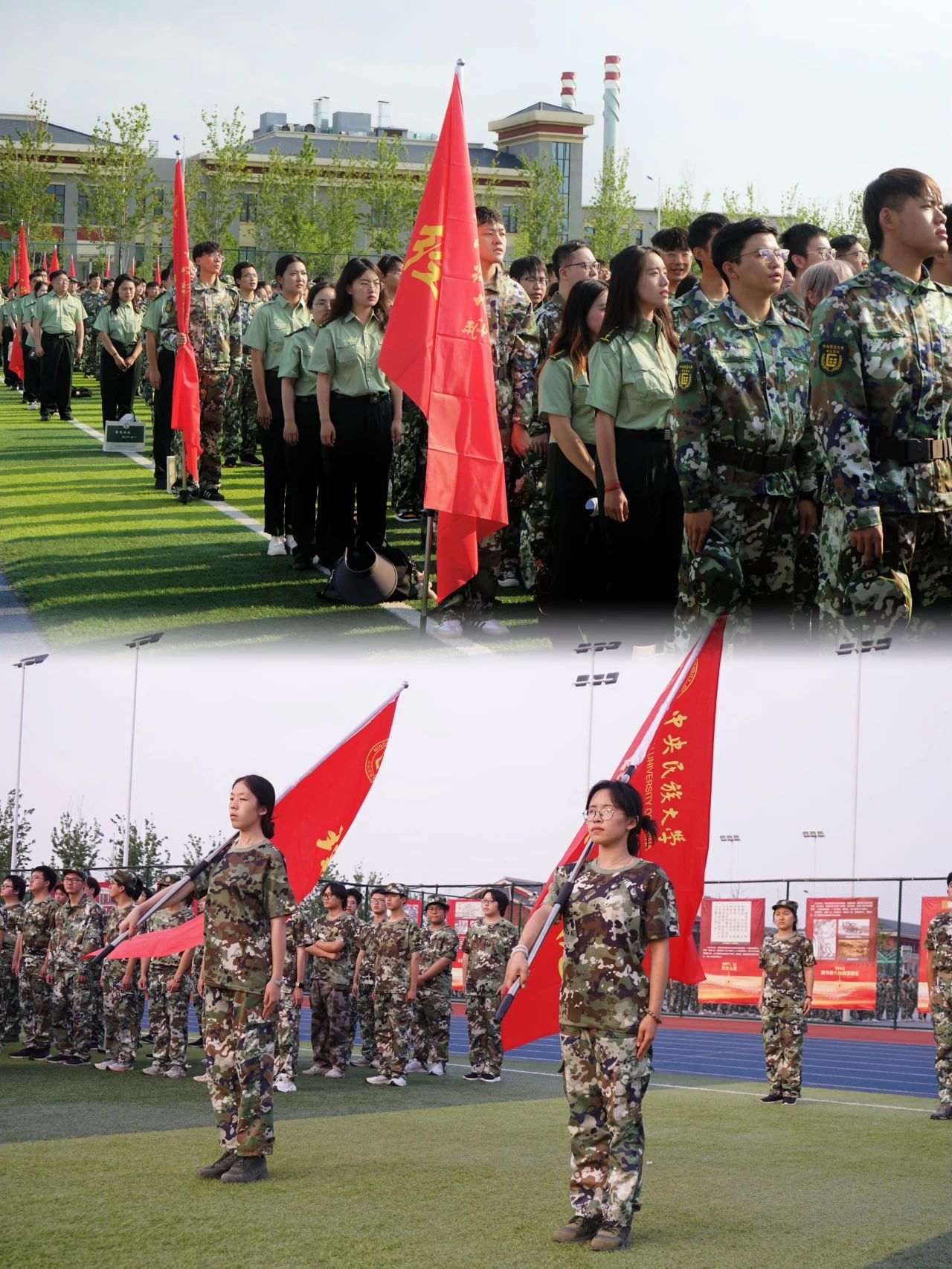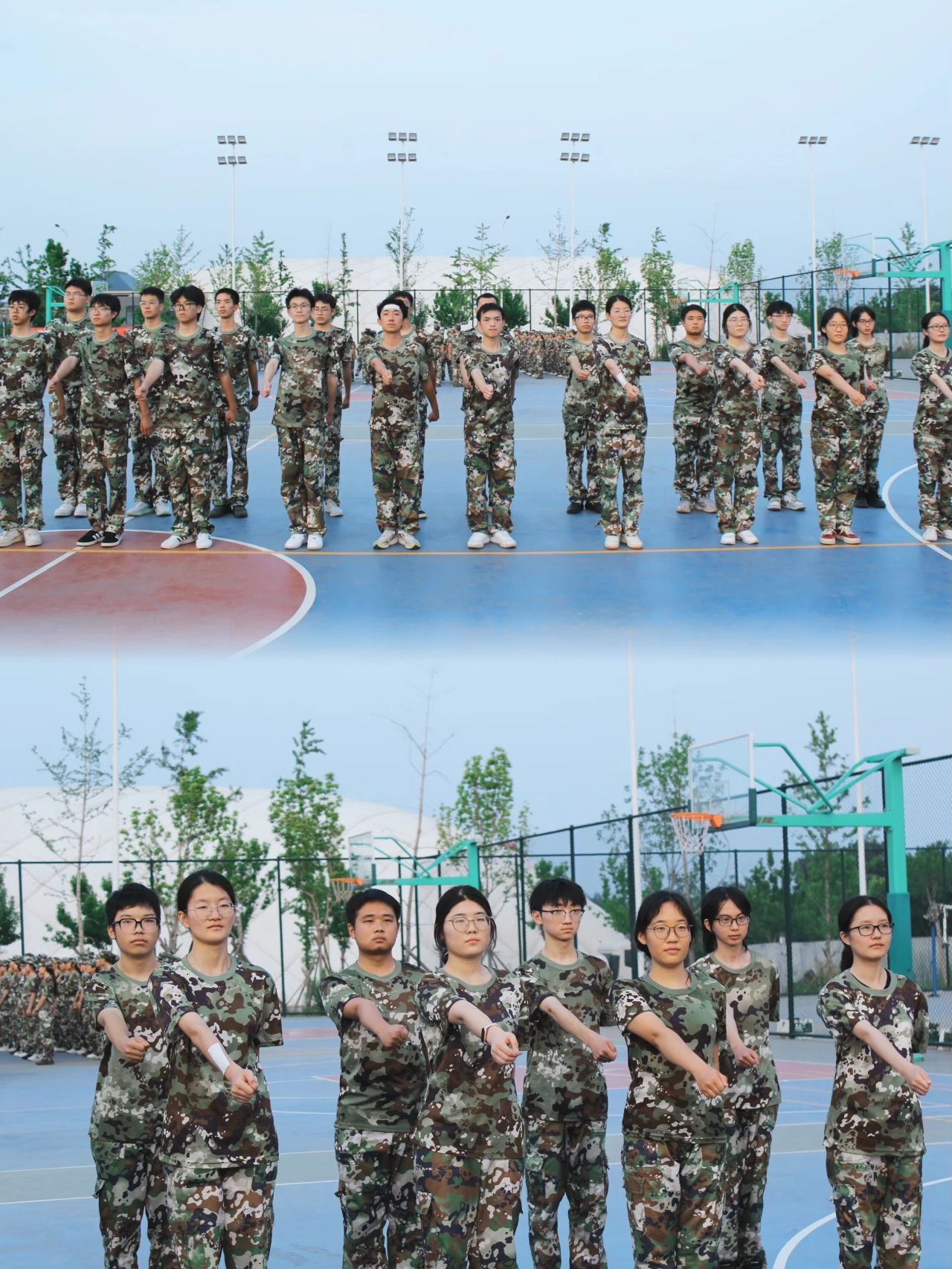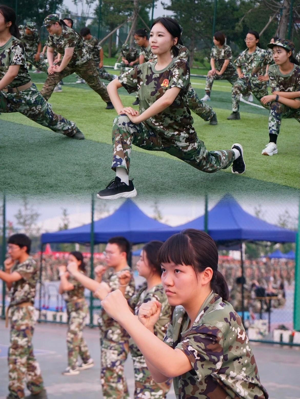 操场上整齐的“迷彩绿”们英姿勃发